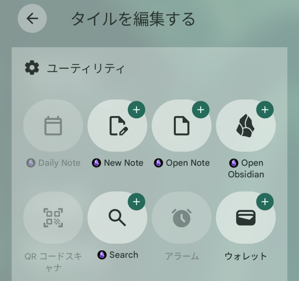 Androidの通知センターのショートカットに、obsidianの「デイリーノート」や「ノート検索」をワンタップで呼び出せるボタンが選べるようになってた。